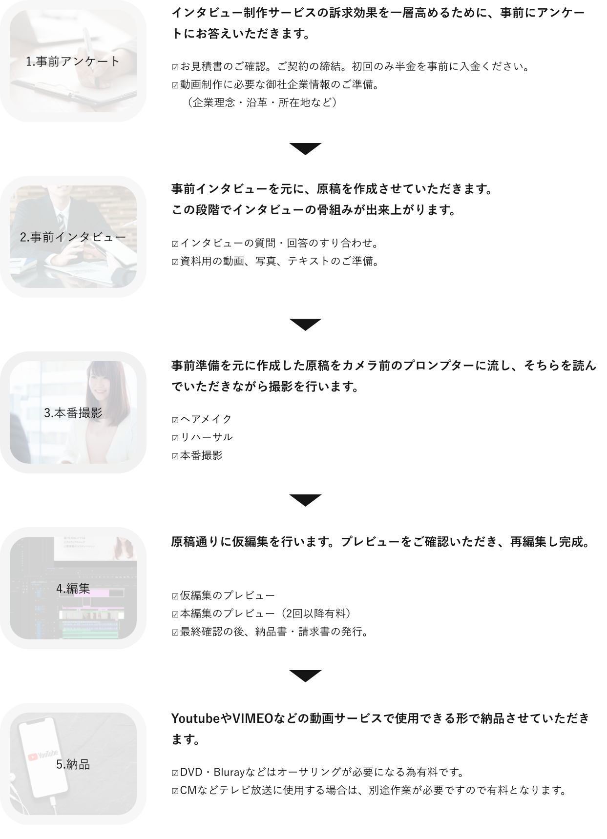 徹底した効率化と企業努力により、業界随一の高品質動画でありならがらこの価格を実現。オープニング・テロップ・撮影日の追加などでよりリッチな仕上がりにすることも可能です。